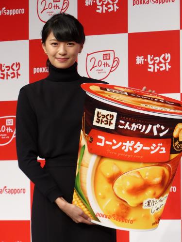 黒のハイネックにロングスカートとシックな衣装で登壇。結婚後、公の場に登場するのは初めてで、退場時に「今は“じっくりコトコト”あたたかいですか?」と聞かれ、笑顔で会釈した。新CMは寒い冬の朝にスープを飲んで温まる内容。「実は撮影は8月。34、35度ぐらいあって物凄く暑くて大変でした」と明かした。