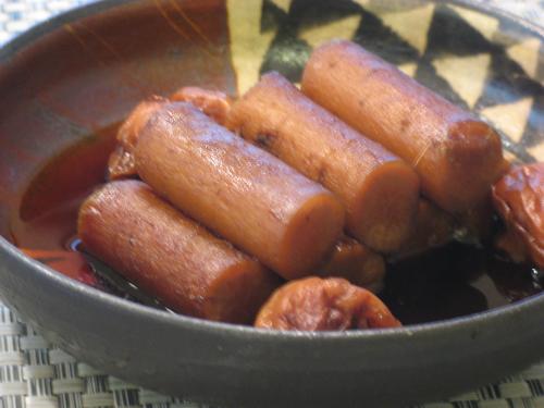 (3)出汁(煮干し、コンブ、椎茸で取る)1、日本酒1、しょうゆ0・5、ミリン0・5の割合で合わせてから、煮きり、梅干し2、3個を加えた煮汁に牛蒡を投入。約1時間弱火で煮る。そのままでもよいが、冷めて味がさらにしみてからもおいしい。