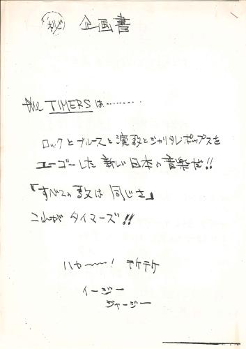 【画像・写真】清志郎さん覆面バンド「ザ・タイマーズ」幻の結成企画書発見