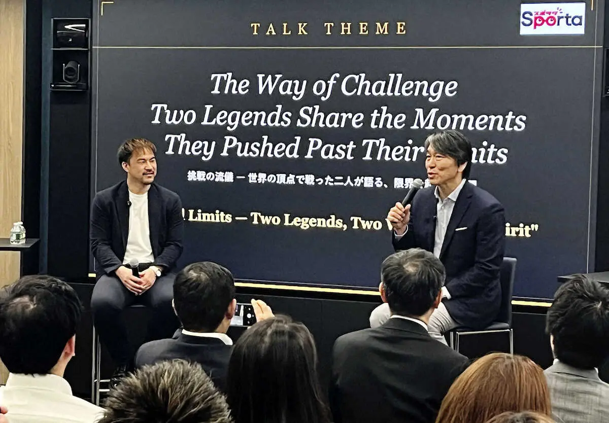 日本遺産大使に任命され、ビデオメッセージを寄せた元プロ野球選手の松井秀喜氏(右)