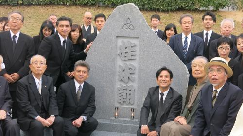 昨年3月に89歳で亡くなった人間国宝の落語家桂米朝さんの墓が故郷の兵庫県姫路市内に造られ、弟子で長男の落語家桂米団治(57)らが参列して6日、お披露目式が行われた。