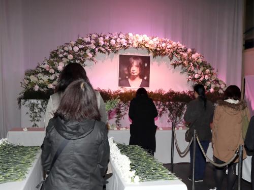 川島道行さんの祭壇に献花するファン