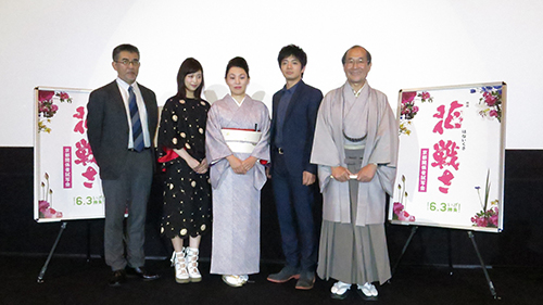 戦国時代、天下人・豊臣秀吉に単身立ち向かった実在の花僧である華道家元池坊の初代・池坊専好(1536~1621年)の伝説が描かれた作品。冒頭に昨年11月に襲名した次期家元の四代池坊専好(51)は「生け花作品は人の心を和まし、励まし、勇気づけてきました。人の心を動かすというのは、世界を変えるという大きなッセージがある」と“花の力”を力説した。