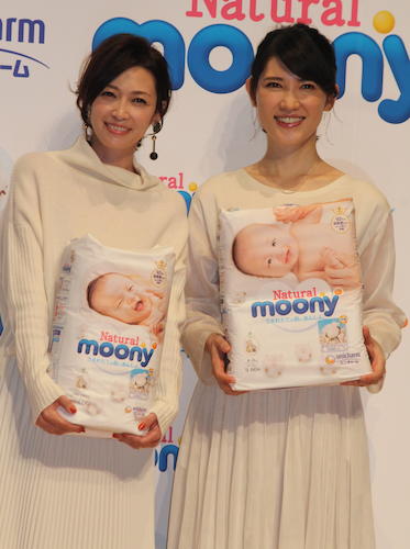 「ナチュラルムーニー発売記念イベント」に出席した辺見えみり(左)と友利新