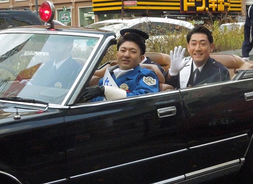 来年1月、大阪松竹座で親子4人での襲名披露興行に臨む中村芝翫(51)が9日、大阪府警南署の1日警察署長を務め長男の中村橋之助(20)ら息子3人と御堂筋をパレード。沿道からは「成駒屋!」などと声援が飛び、芝翫らも笑顔で手を振り応えた。