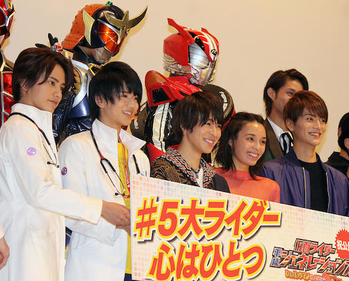 今年9月までテレビ朝日で放送された「仮面ライダーゴースト」の西銘、現在放送中の「仮面ライダーエグゼイド」の飯島のほか歴代ライダーが集結し敵と戦う。飯島は先輩ライダーとの共演を振り返り「いい勉強になりました」と笑顔。西銘は「レジェンドとして戻ってきたい」と誓った。