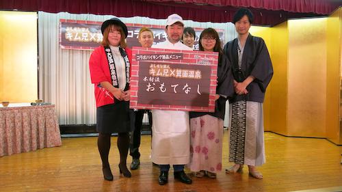 この日は料理大好き芸人の“キム兄”が監修した「木村流絶品おもてなし鶏鍋箕面風」の完成披露試食会。「鶏ガラの状態、鶏モモの種類、ミンチ肉の細かさ」などにこだわり、長時間煮込んだ絶品鶏鍋を提供。宿泊客や、ゲストの男女お笑いコンビ「相席スタート」らをうならせた。