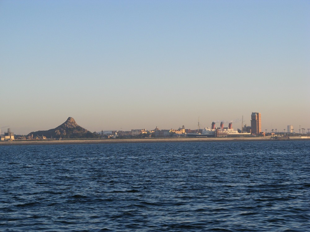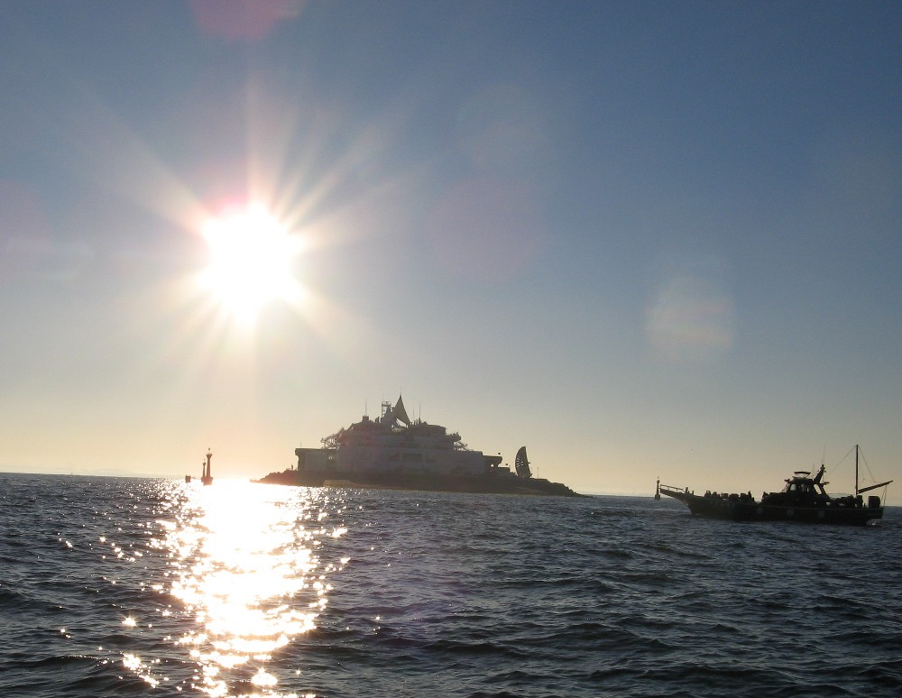 朝陽を受けた海ほたる。モン・サン・ミシェルのようにも見える朝陽を受けた海ほたる。モン・サン・ミシェルのようにも見える