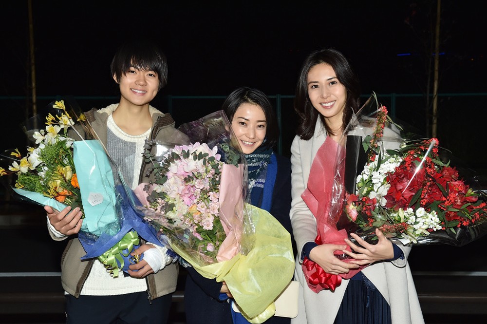 最後のカットのチェックが終わり、スタッフから全ての撮影を終えたことが告げられた3人は、プロデューサーや監督から花束を受け取り、感無量の表情。菅野は第1子出産後初の連ドラ主演となったが「松嶋さんと共演できたことに感謝しています。まだまだ子どもに手がかかる時期で、でもこんな機会はないなと思って出演させて頂いた」と笑顔。「台本を読んで感動して、スタッフの皆さんのがんばりに感動して、演者さんたちのお芝居に感動して、仕上げでも感動させてもらって、本当ににこんな現場は、なかなかないなって心から思いました」と感慨深げな表情で語った。