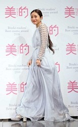 女優の石原さとみ(29)が20日、都内で行われた「美的ベストコスメ大賞」の発表・贈賞式に出席、昨年に続き2年連続で「ベストビューティーウーマン」に選ばれた。