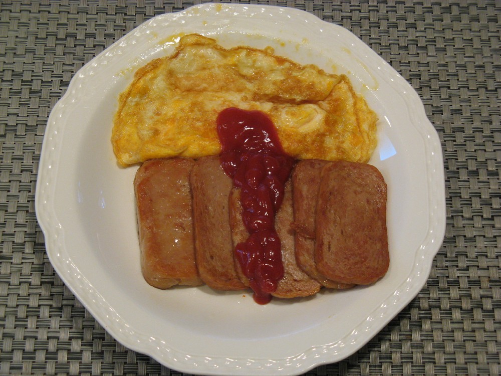 炒め物やおにぎりの具材などに用いられることが多いが、もっともシンプルなのは「ポークたまご」。ハワイ出身の大相撲元横綱の曙が、「おふくろの味」としてこの料理をあげていたのを何かの本で読んだことがある。