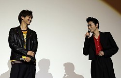 菅田将暉 リーゼントで舞台あいさつ、ツッコミ入れ“ヤンキー座り”も