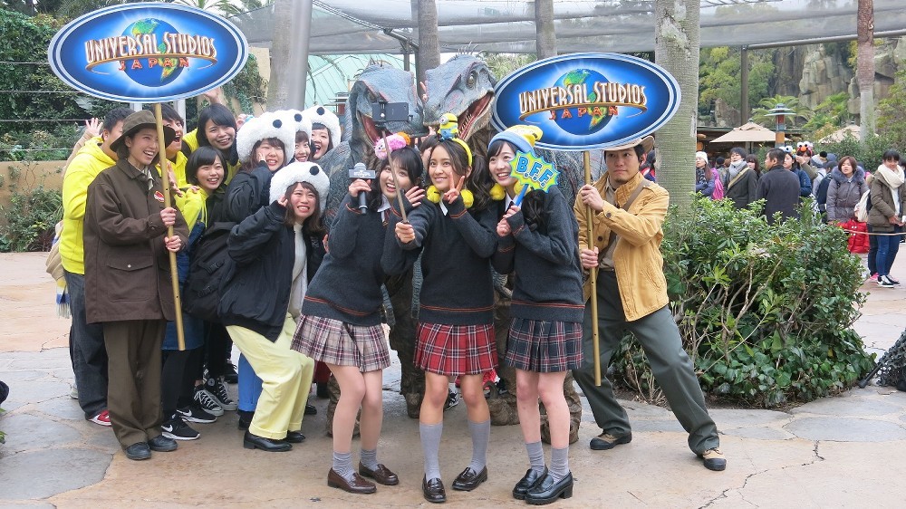 ユニバーサル・スタジオ・ジャパン(USJ)の「ベスト・フレンズ・フォーエバー(BFF)キャンペーン」が1日にスタート。モデルでタレントの岡田結実(16)、モデルの鶴嶋乃愛(15)、日達舞(16)の3人が人気の「ザ・フライング・ダイナソー」「ウィザーディング・ワールド・オブ・ハリー・ポッター」「進撃の巨人・ザ・リアル」などを楽しんだ。