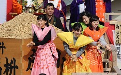 大河「直虎」出演者らが豆まき 感激の前田吟「菜々緒さんにも会えた」