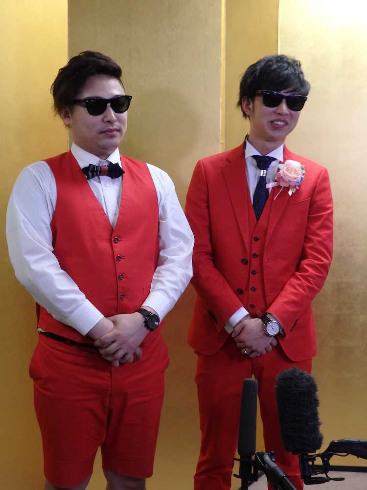 「ハーフ顔」という新妻とは2年前に出会い、1年前から交際開始。「現在妊娠3〜4カ月」という。一昨年にリズムネタ「ラッスンゴレライ」で大ブレークするも現在は低迷気味。「長く安定して食っていきたいから漫才を頑張っている。今年はM―1グランプリで2回戦突破」と、結婚を機に“脱一発屋”に向け、地道な進化を誓った。