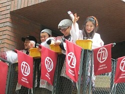 芸能プロダクションのレプロエンタテインメントが3日にオープンする「浅草九劇」。開業に先駆けて2日にイベント開催し、こけら落とし公演「あたらしいエクスプロージョン」に出演する女優の川島海荷(22)、俳優の八嶋智人(46)らが記者会見と餅まきを行った。