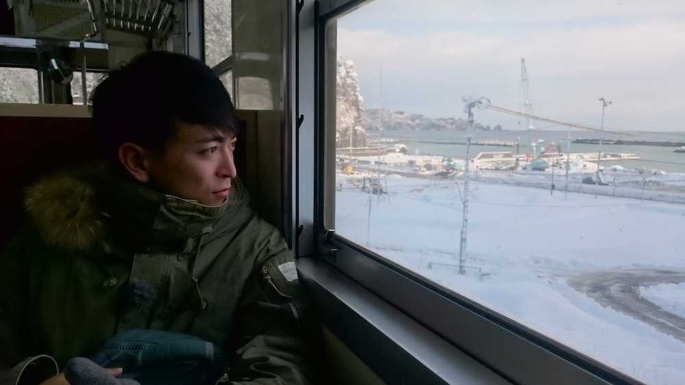 NHK「バスで!列車で!アッキーがゆく”復興の地”」に出演する篠山輝信