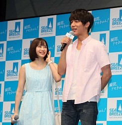 女優の広瀬すず(18)、俳優の中川大志(18)が15日、ボディーケアブランド「シーブリーズ」の新CM発表会を都内で行った。