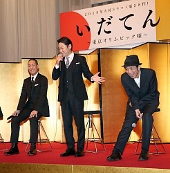 NHKは3日、2019年大河ドラマ(第58作)の主演とタイトルを発表した。歌舞伎俳優の中村勘九郎(35)と俳優の阿部サダヲ(46)が主演。中村が前半の中心、阿部が後半の中心となり、物語をリレーする。題名は「いだてん〜東京オリムピック噺〜」。