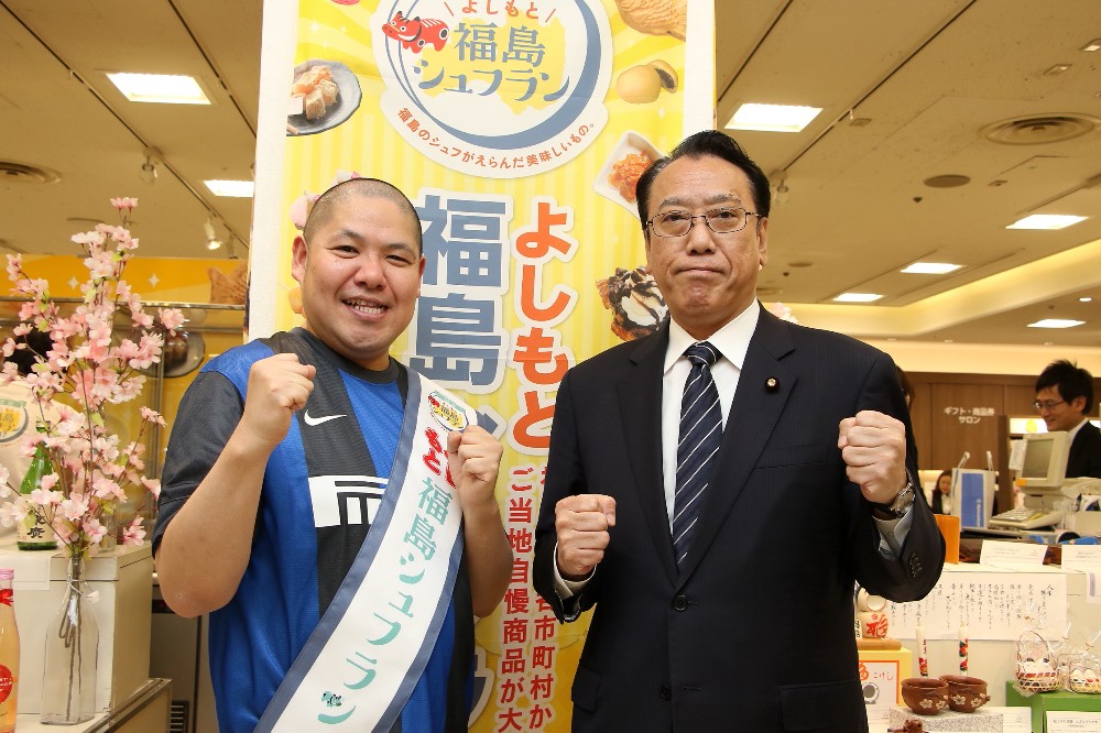 長沢広明復興副大臣(58)が10日、東京・松坂屋上野店で開催されていた「よしもと福島シュフラン2017」を訪れ、福島県出身のお笑い芸人・三瓶(40)とともに、福島のご当地商品を試食した。