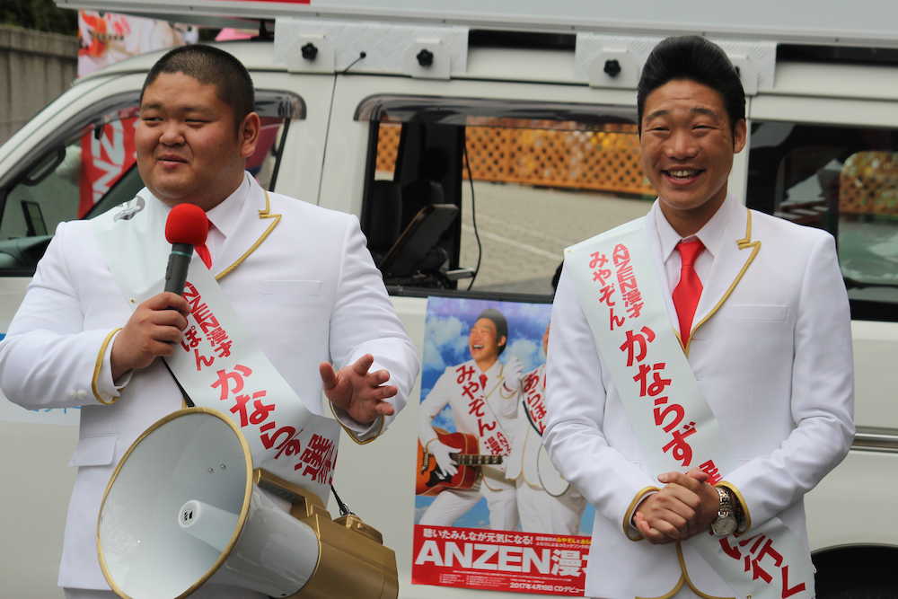 デビューCD「かならず選挙に行く」発売記念イベントで熱唱する「ANZEN漫才」みやぞん(左)とあらぽん Photo by スポニチ ANZEN漫才 CDデビューイベントもグダグダ…4度目は口パクも ギャラリーで見る この記事のフォト 2017年04月17日の画像一覧 もっと見る 2017年04月17日の画像をもっと見る