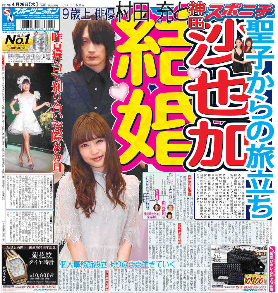 神田沙也加のインスタグラムに投稿された(左から)神田正輝、沙也加、村田充の写真(提供写真) Photo by 共同 沙也加5・13“披露宴” 結婚発表、聖子不在の3ショット公開 ギャラリーで見る この記事のフォト 2017年04月27日の画像一覧 もっと見る 2017年04月27日の画像をもっと見る