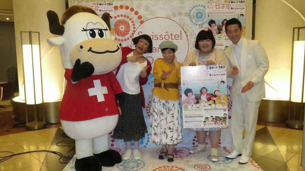 「女の子同士でカモーン!私ら女子会ですねんキャンペーン!!」の発表会見が26日、大阪市内のホテルで行われ、すっちー(45)、山田花子(42)、酒井藍(30)が出席した。