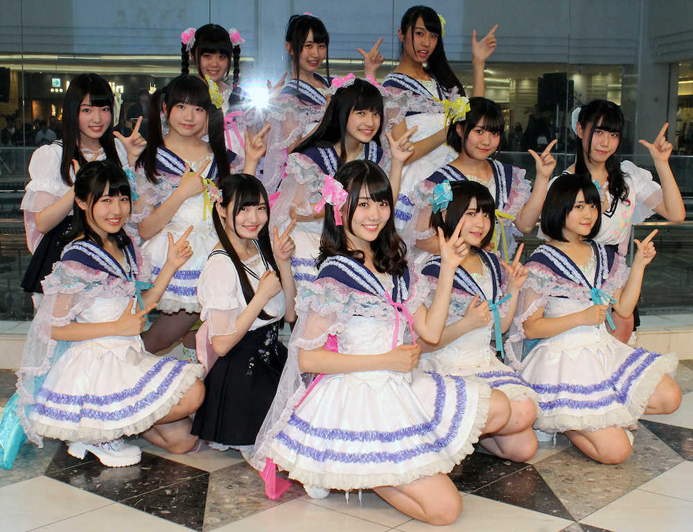 12人組の新人アイドルグループ「虹のコンキスタドール」が27日、デビューイベントとなるミニライブを東京・池袋サンシャインシティ噴水広場で行った。