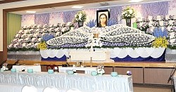 祭壇には斎藤さんが好きだった紫色の花が中心に飾られ、棺の中には愛用の眼鏡が入れられた。葬儀・告別式は2日午後0時半から同所で営まれる。