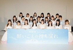 AKB48の新曲「願いごとの持ち腐れ」(31日発売)のミュージックビデオ(MV)先行試写会が1日、都内で行われ、ダブルセンターの松井珠理奈(20)、宮脇咲良(19)らメンバー計21人が出席した。