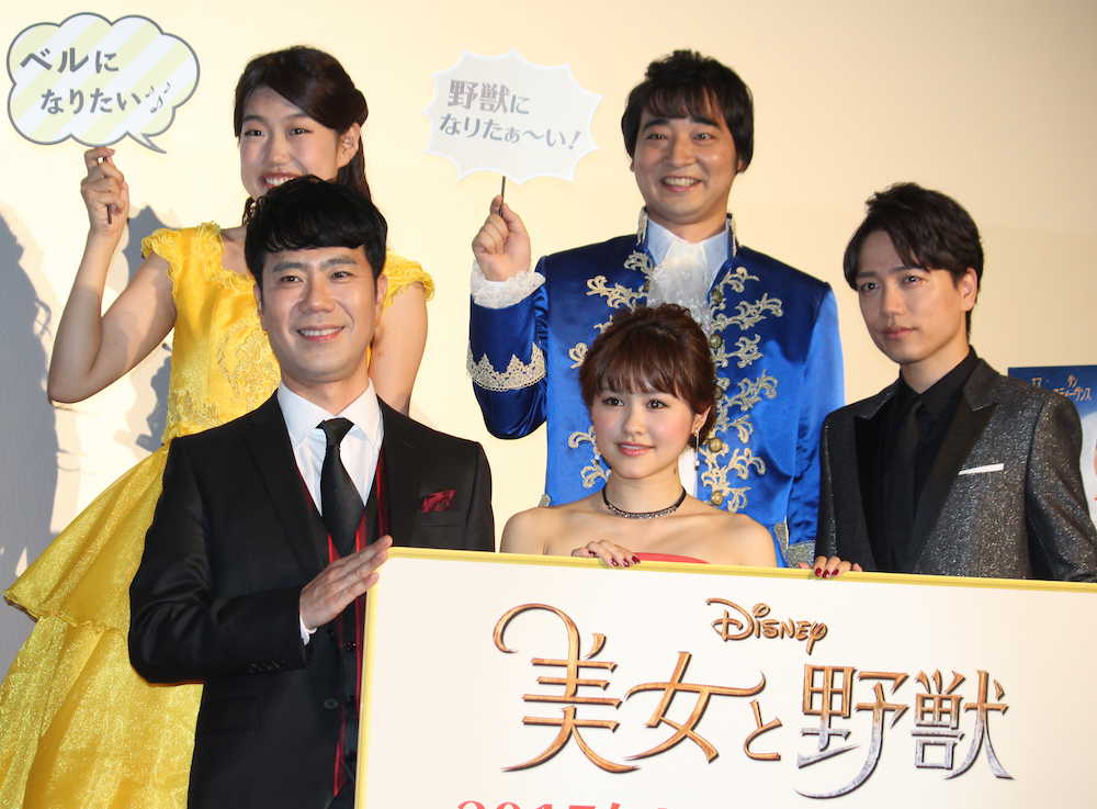 同イベントには「美女と野獣」が大好きなお笑い芸人の横澤夏子(26)、「ジャングルポケット」斉藤慎二(34)が最初に登場。横澤が二代目昆夏美、斉藤が新・山崎育三郎としてデュエットして同映画の主題歌を情感たっぷりに歌い上げ、自身で酔いしれた。映画で「ル・フウ」役を務め、この日は司会を担当した藤井隆(45)から「今日は何をしに来られたの?」とツッコまれるも、2人で「大好きすぎて来ちゃった!」と大ファンであることをアピール。すると、サプライズで山崎と昆が登場し、主題歌を披露。“本物”の格の違いを見せつけ、会場を沸かせた。