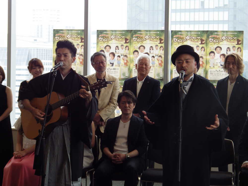 熊の魂が乗り移った男の騒動を描く、高尚なオペラ作品。それだけに会見では、男のエロい妄想を歌にしている2人に主催者から「下ネタ禁止令」を通告された。それでも江口は「皆さんの足を引っ張らないようにしたい。本番では“真ん中の足”も引っ張らないようにしたい」と“珍トーク”をねじ込んだ。