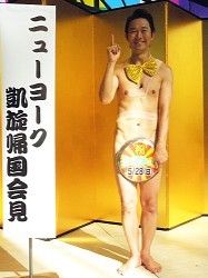 ニューヨークでは街中でも、ほぼ裸のスタイルで闊歩(かっぽ)したが「よっぽど変なヤツだと思われたのか、まったくトラブルに巻き込まれなかった」と苦笑い。「ニューヨークの次はロス、ハリウッド。カンヌ、ベルリン…」と名だたる映画祭が行われる都市をあげ世界進出をぶち上げた。
