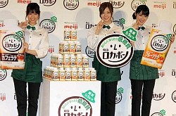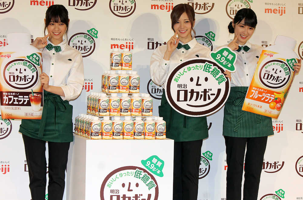 乃木坂46の西野七瀬(23)、白石麻衣(24)、高山一実(23)が6日、CM出演する明治の乳飲料「ロカボーノ」の都内で行われた新商品発表会に出席した。