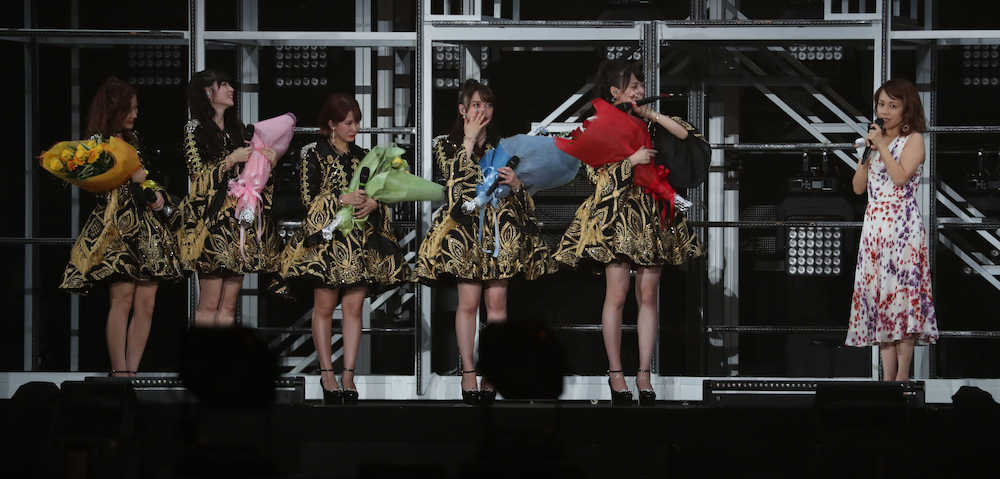 ステージを去る「℃―ute」(左から)岡井、中島、矢島、鈴木、萩原 Photo by スポニチ 12年間ありがとう!℃―ute有終の「さいたま」単独公演 ギャラリーで見る この記事のフォト 2017年06月13日の画像一覧 もっと見る 2017年06月13日の画像をもっと見る