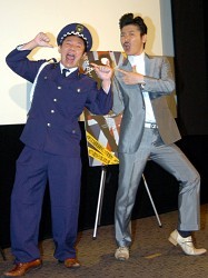 得意ギャグ「山下パッカ〜」を披露するオモロー山下