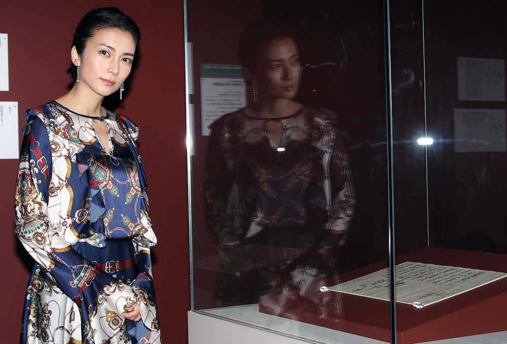 NHK大河ドラマ「おんな城主 直虎」に主演する柴咲コウ(35)が3日、「戦国!井伊直虎から直政へ」特別展(4日〜8月6日)が開催される東京・墨田区の江戸東京博物館を内覧に訪れた。