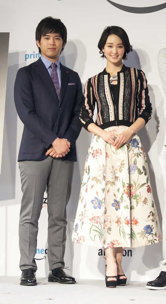 Amazonプライムデーの発表会見に出席した剛力彩芽。左は三浦貴大