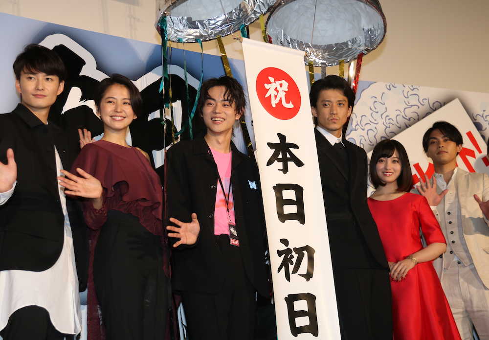 俳優の小栗旬(34)が主演する映画「銀魂」(監督福田雄一)の初日舞台あいさつが14日、都内で行われた。