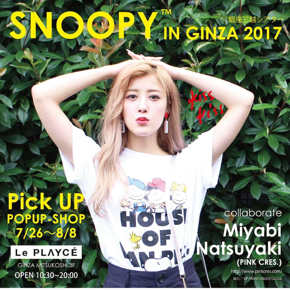 東京・銀座三越で「スヌーピー in 銀座2017」が開催中。特設ポップアップショップ(3階)では、元Berryz工房で、現在PINK CRES.として活動中の夏焼雅とのコラボ商品などを販売している。