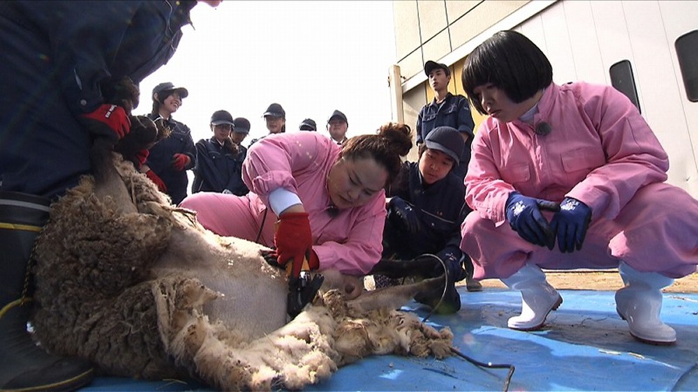 生徒たちを応援しようと、2人は羊の毛刈りに初挑戦。まずは羊を捕まえるため小屋に向かうも、予想以上にすばしっこい羊に悪戦苦闘。相撲が強いことでも知られるゆいPは果敢に挑むが、オカリナは逃げ腰。ようやく羊を捕まえ、毛刈りのレクチャーを受けて作業を開始すると、ゆいPが意外な才能を発揮する。初めてとは思えない手際の良さに、高校生たちからは感嘆の声が上がる。