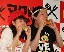 女優の平愛梨(32)とお笑いタレントの今田耕司(51)が7日、都内で行われた日本マクドナルドの「マックなのか?マクドなのか?おいしさ対決!」キャンペーン発表会に出席した。