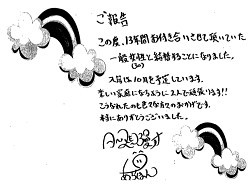 あらぽん本人も事務所を通じて、直筆ファクスで報告、入籍は10月を予定しているとし、感謝をつづった。