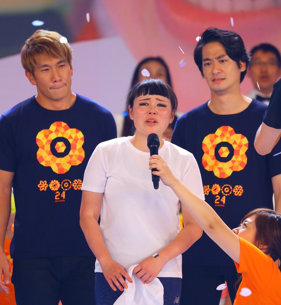 さらにブルゾンがゴールした直後の2人の“ウソ泣き”疑惑には「本来、『with B』は感情を出してはいけないキャラクターでもあり、その『with B』が感情解放させていただきまして、実際に泣いた。ブルゾンさんも間近で見ている」と完全否定。映像ではウソ泣きのように映っているが、本当に泣いていたと主張した。神妙な表情を浮かべていた理由には「(ブルゾンとの)いろんなことを思い出していた」ことを挙げた。