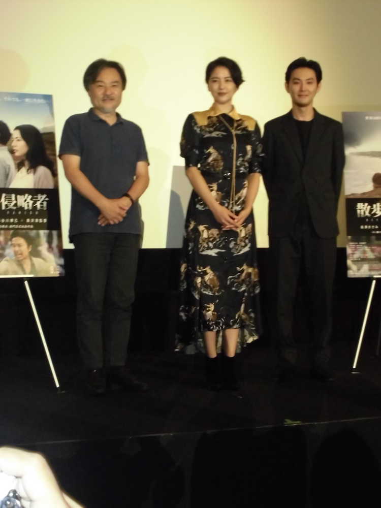 女優の長澤まさみ(30)が30日、大阪市内で松田龍平(34)、黒沢清監督と9月9日公開の主演映画「散歩する侵略者」の先行上映会に出席した。