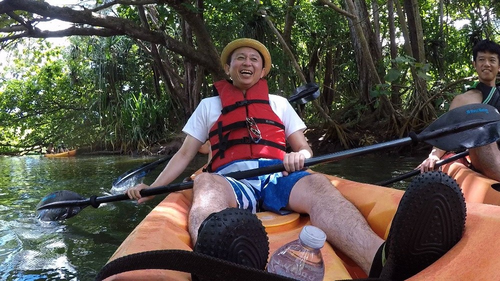 「有吉の夏休み2017密着77時間inハワイ」で笑顔の有吉弘行(C)フジテレビ