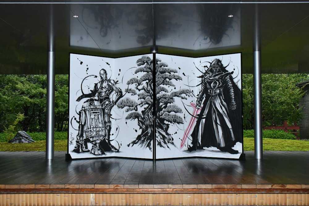 “水墨画スター・ウォーズびょうぶ”披露 最新作ヒット祈願