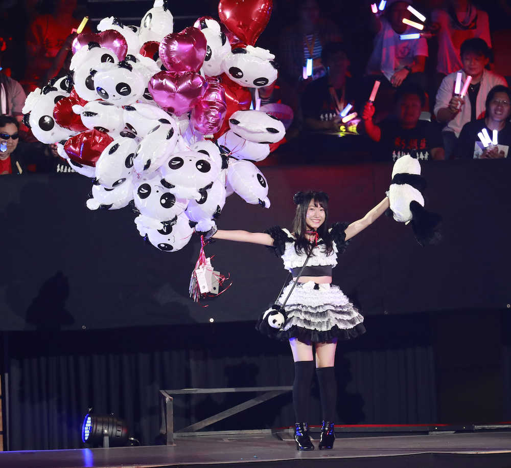 白黒のメイド服風の衣装、手にはパンダのぬいぐるみ、たくさんのパンダの風船で、パンダ推しをアピール。パンダのお面をつけた客席のファンから力強い声援を受け、3連勝で準決勝進出。残念ながらあと一歩で敗れたが、14歳のホープは「みなさんの赤と白のサイリウムがキレイでうれしかったです」とファンに感謝した。