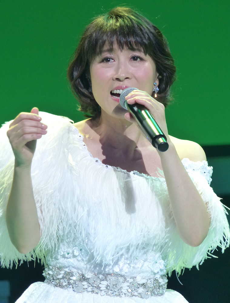 ドレス姿で熱唱する水森かおり