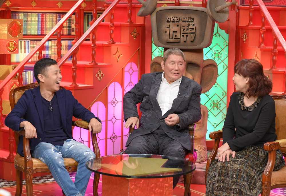 ABC「なるみ・岡村の過ぎるTV」の収録で盛り上がる(左から)岡村隆史、ビートたけし、なるみ